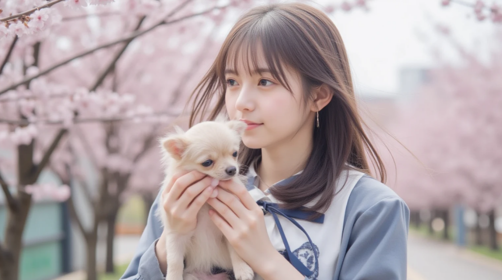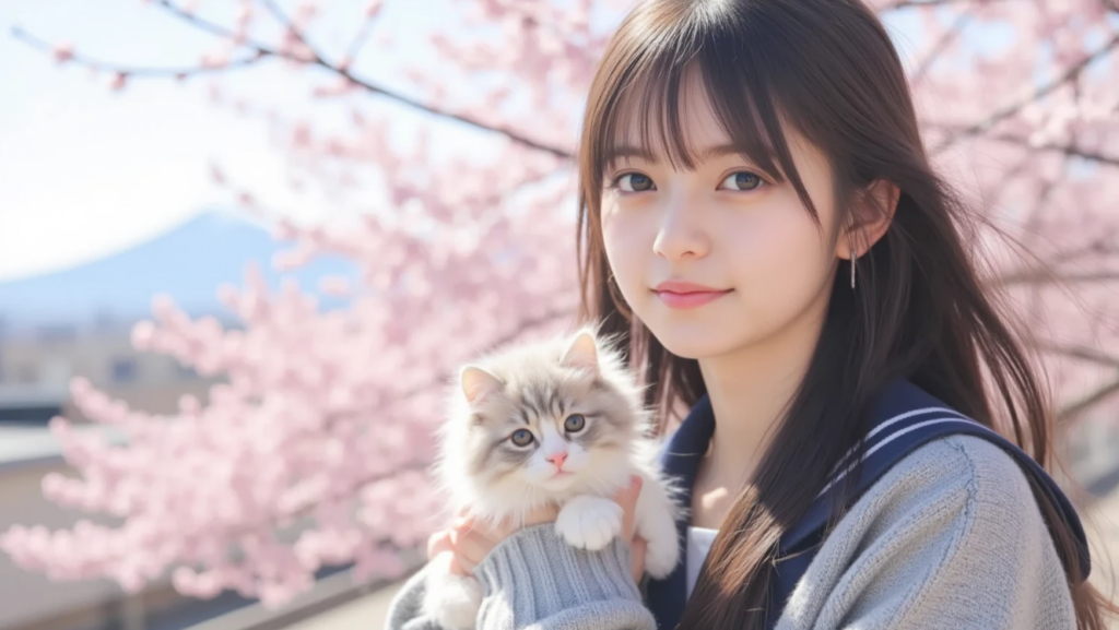 ◆動くAI画像美女「桜吹雪舞う公園」 2026.2.14