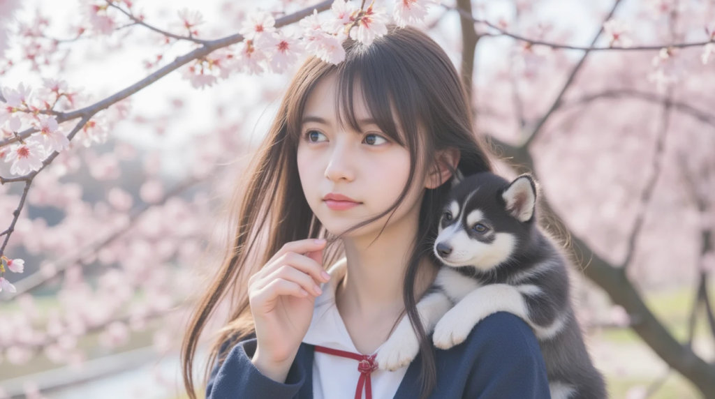 ◆動くAI画像美女「ハスキーと共に」 2026.2.08